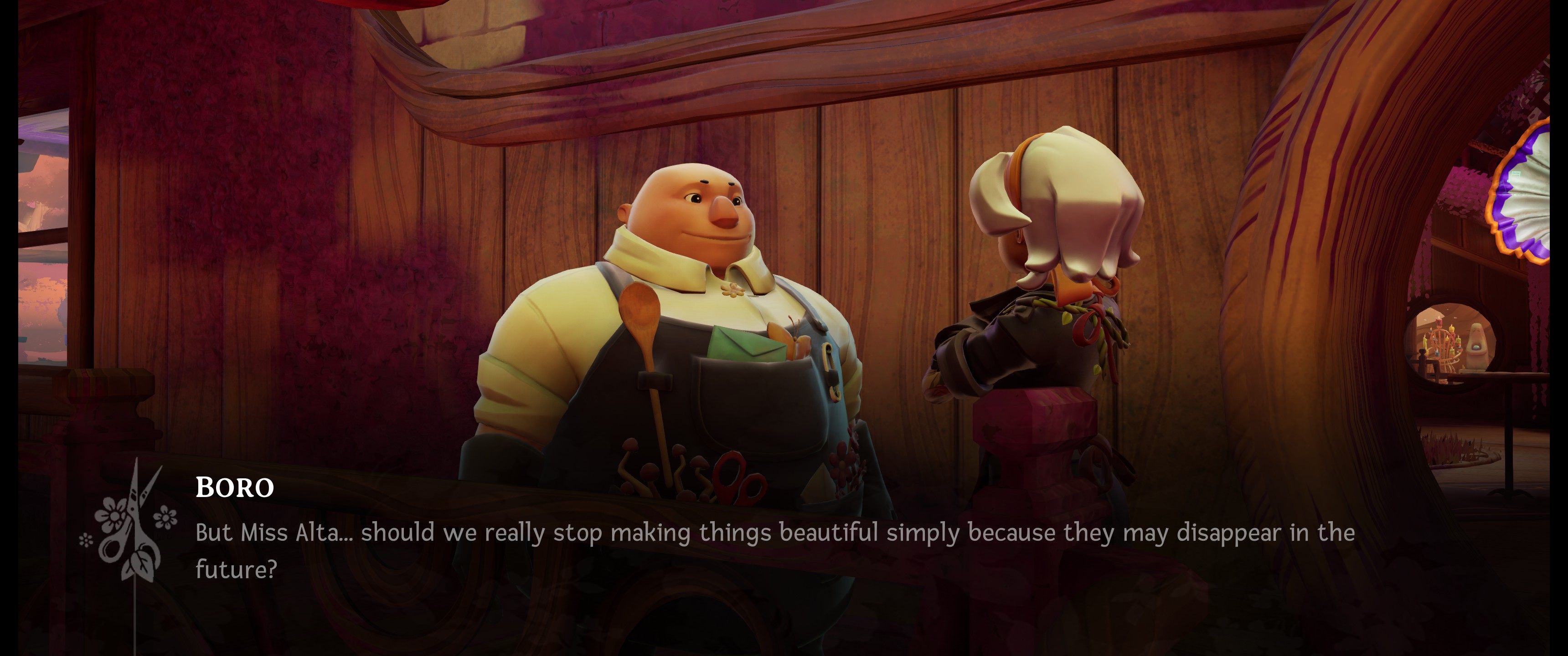 Wanderstop is a cozy game with a poignant message for any of us who have that innate drive to try to optimize our time spent down to the minute. There is no time pressure on any of the game’s tasks, the environment is comfortable and relaxing, and Boro is endlessly supportive as Alta works through her burnout and comes to terms with the fact that nothing lasts forever. It’s about becoming more assertive with that inner voice and learning to live a more examined life. It’s about the ephemerality of our identity and how it naturally changes over time; how elements of our lives that once defined us fade into the background and we perpetually reinvent ourselves.